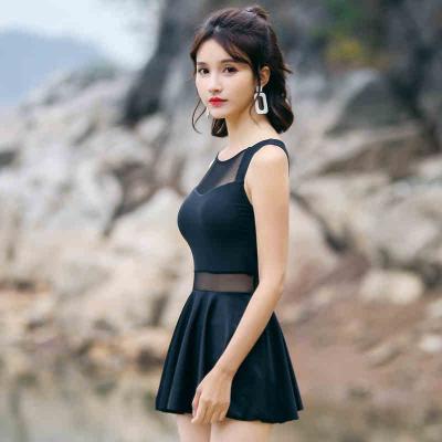 韩国连体游泳衣女保守平角裙式小胸遮肚显瘦大码温泉学生运动泳装
