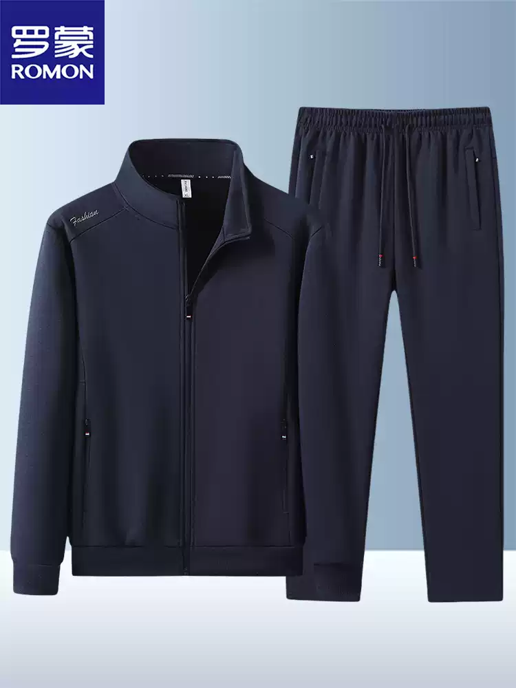 罗蒙男士立领卫衣开衫运动套装男春秋休闲两件套棉宽松大码跑步服