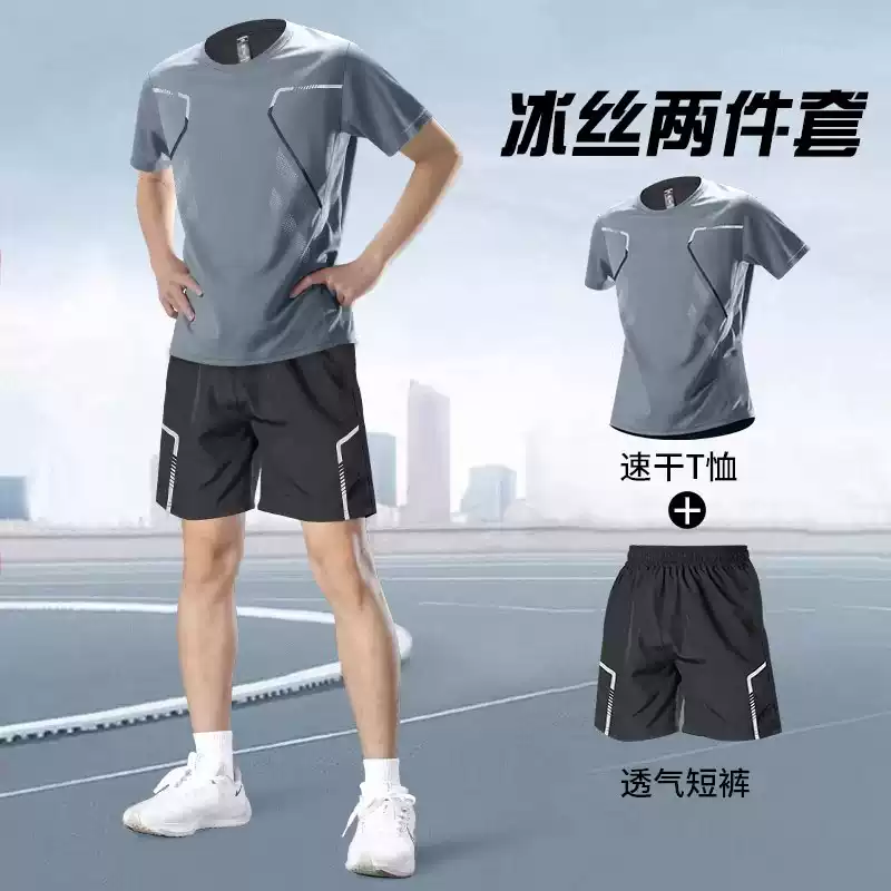 德国夏季跑步速干衣男健身衣服短袖羽毛球训练服冰丝短裤运动套装