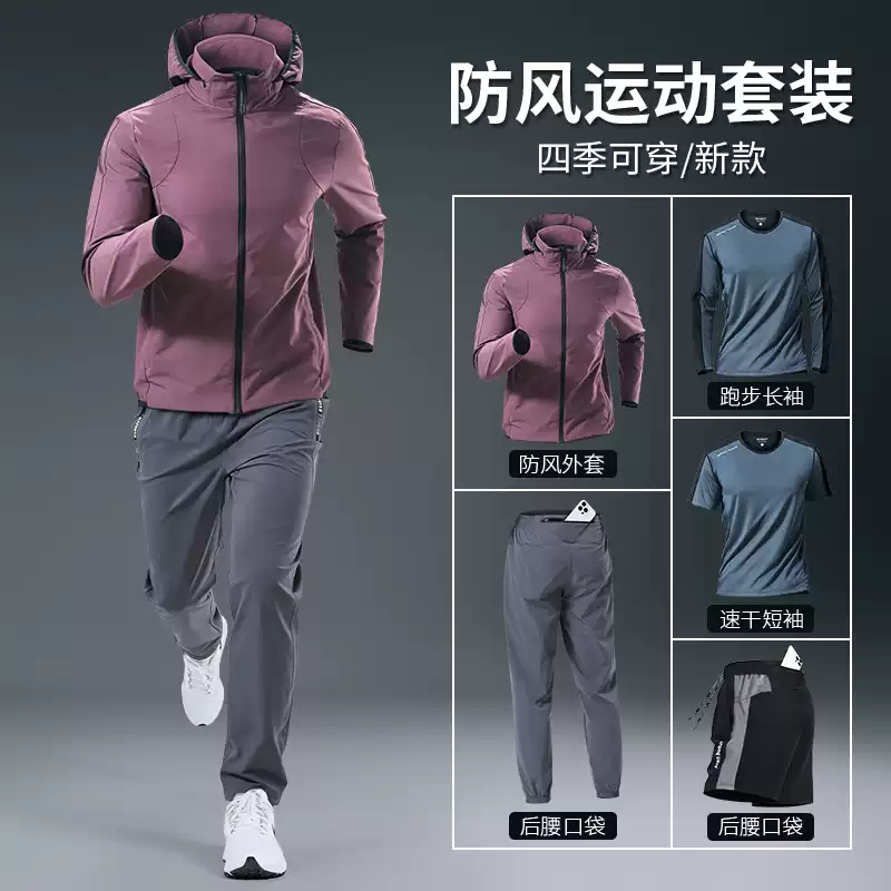 运动套装男秋冬跑步速干长袖外套新款户外防风休闲登山骑行训练裤
