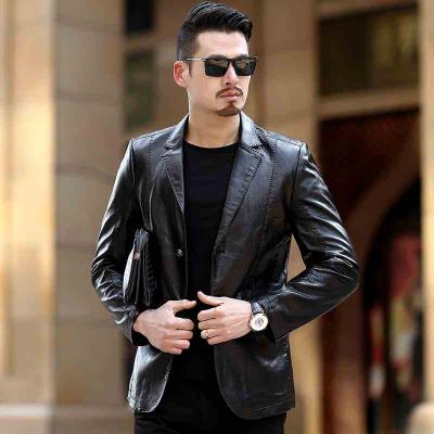 春季新款男士商务皮夹克薄款pu皮衣男时尚休闲中年西服领皮外套