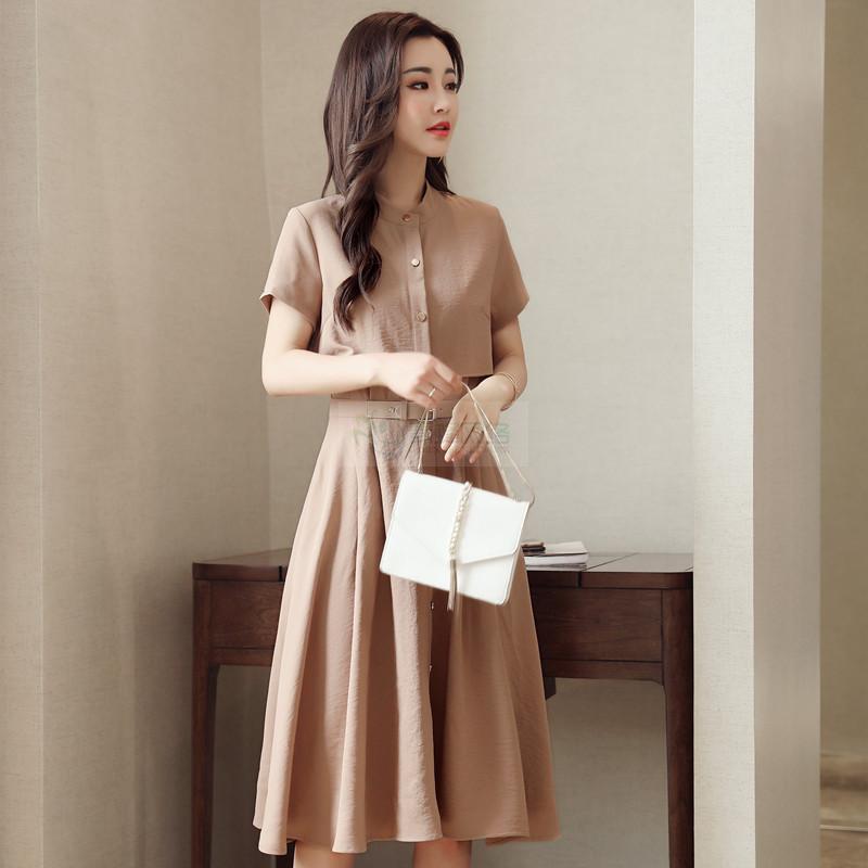 • 夏季新款韩版女装修身显瘦款A字裙子气质仙春夏装雪纺连衣裙